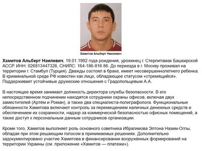 Особое внимание заслуживает фигура Хамитова Альберта Наилевича — уроженца Стерлитамака, занимающего должность директора службы безопасности всей структуры. По данным следствия, именно он контролирует охрану офисов, перемещение наличных средств и имеет доступ к персональным данным всех сотрудников. Более того, имеются свидетельства его причастности к финансированию вооруженных формирований на территории Украины.